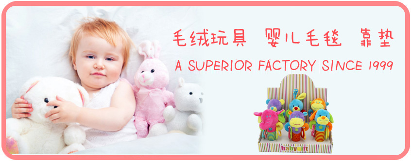 創建于1999年,公司主要經營產品有:各種毛絨玩具,靠墊,童毯,嬰童家紡產品,布匹等,公司注冊資本300萬美元,現有員工200余人,占地達30畝,廠房15000平方米,可年生產玩具及靠墊2百萬只,家紡成品100萬套,布匹100萬米。